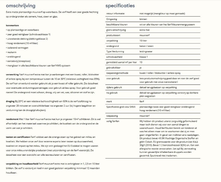 This example from the webshop fairf - Baril’s decorative paint brand - illustrates the vast quantity of product data that must be maintained and kept up to date for every product.